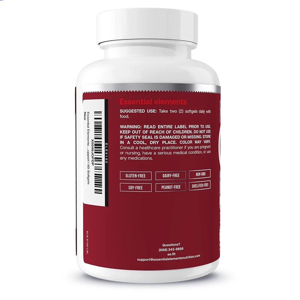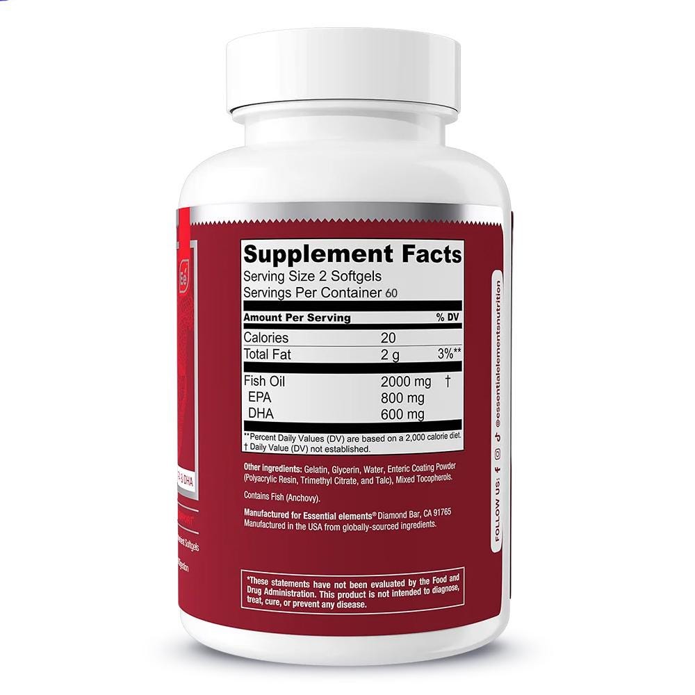 This listing features Essential Elements Omega-3 Fish Oil Softgels in a 120 count bottle.
